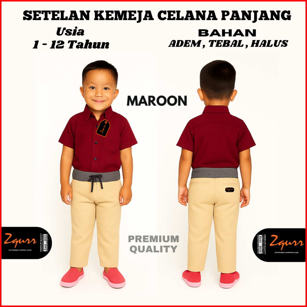 Setelan Kemeja Pendek Anak Dan Celana Panjang Anak Laki Laki Polos Lengan Pendek - Setelan Anak Laki Laki - Bisa Pilih W