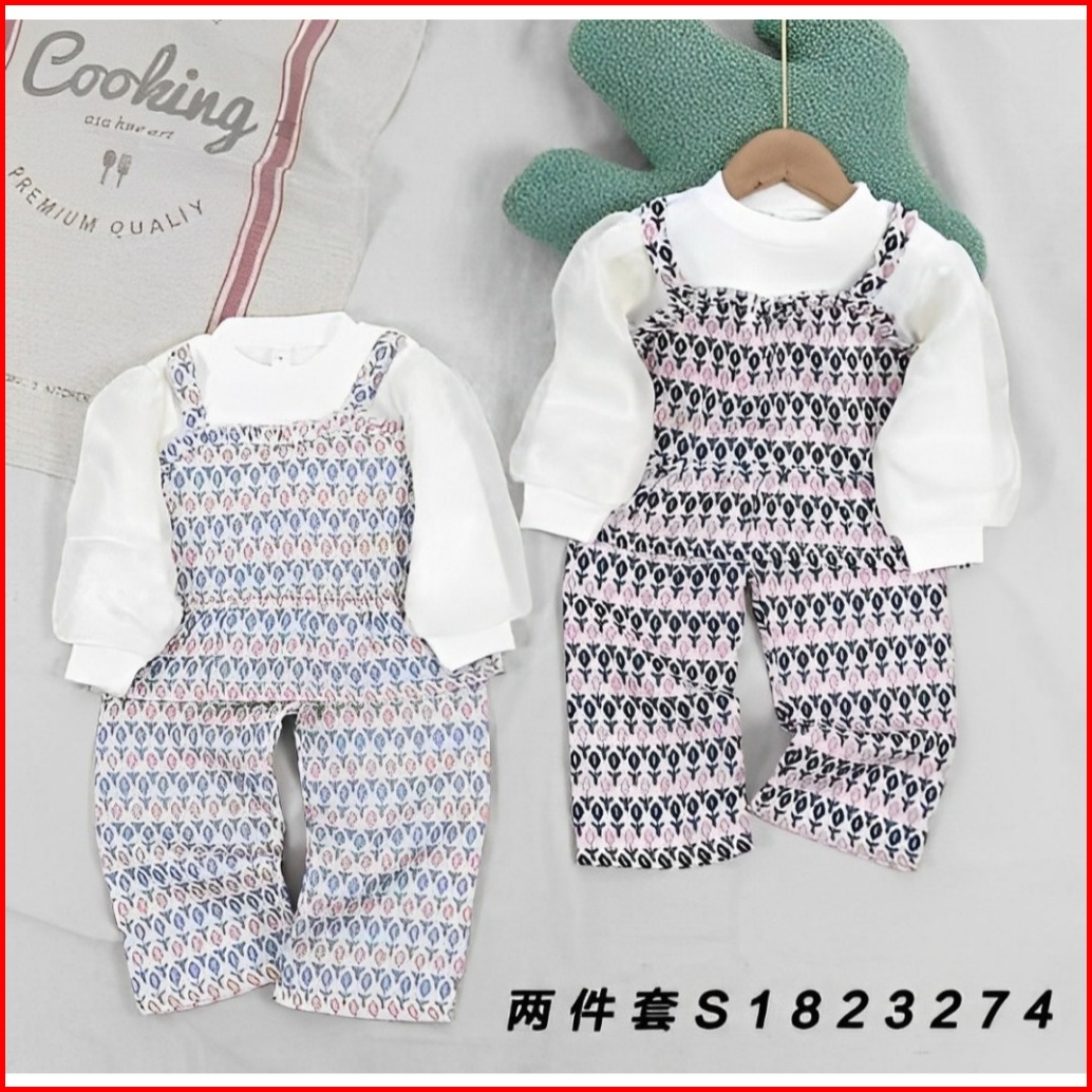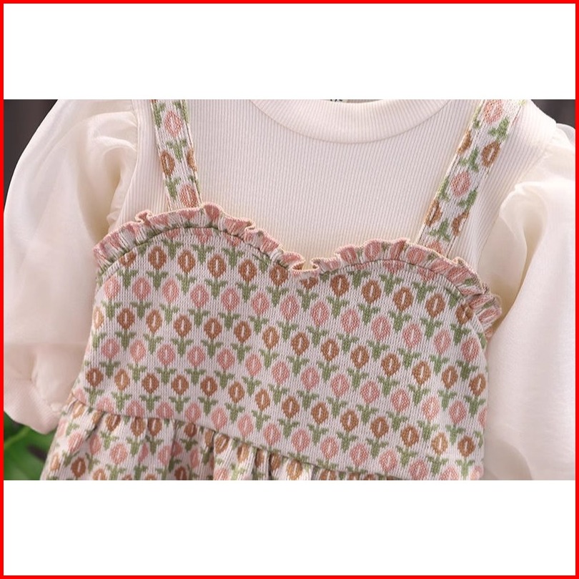 Setelan Anak Perempuan Usia 1-4 Tahun Fashion Trendy Model 2in1 Anak Cewek Model 2in1 Baju Inner Kaos Katun Lengan Panja