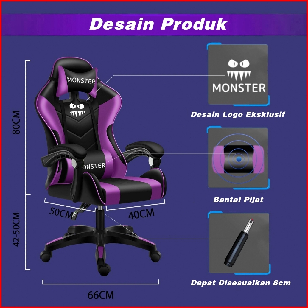 Kursi Gaming Monster Premium Anti Gores Kucing Kulit Sintetis Bearing 150kg Free Neck Pillow Massage Pillow Nyaman Bange