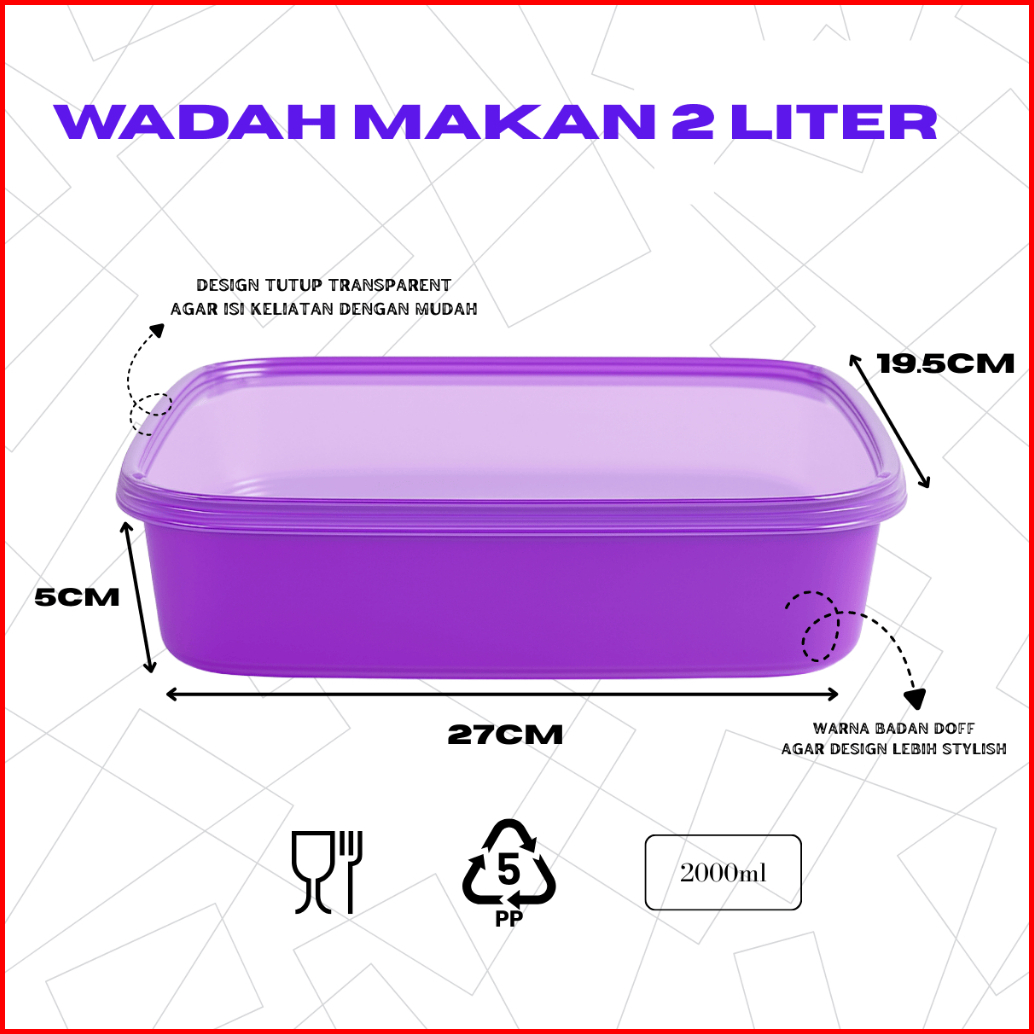 3 6 Pcs Wadah Kotak Sayur Makan Kulkas 2000 Ml 25cm