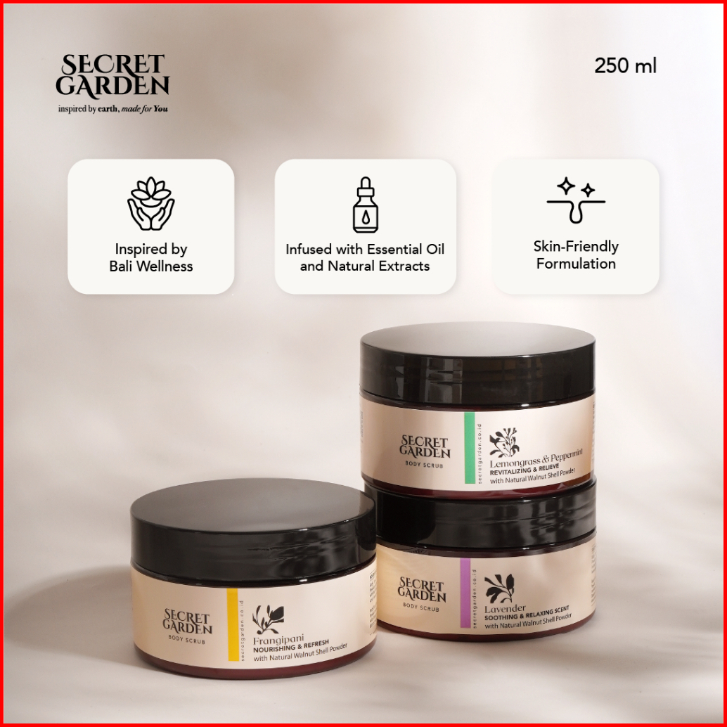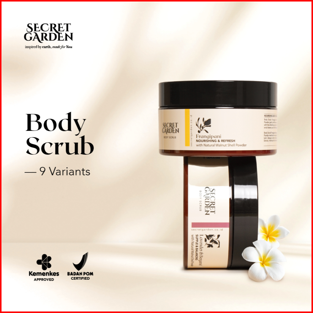 Secret Garden - Body Scrub 200ml Lulur Mandi Eksfoliasi Badan Wangi Alami Menutrisi Menghaluskan Mencerahkan Kulit