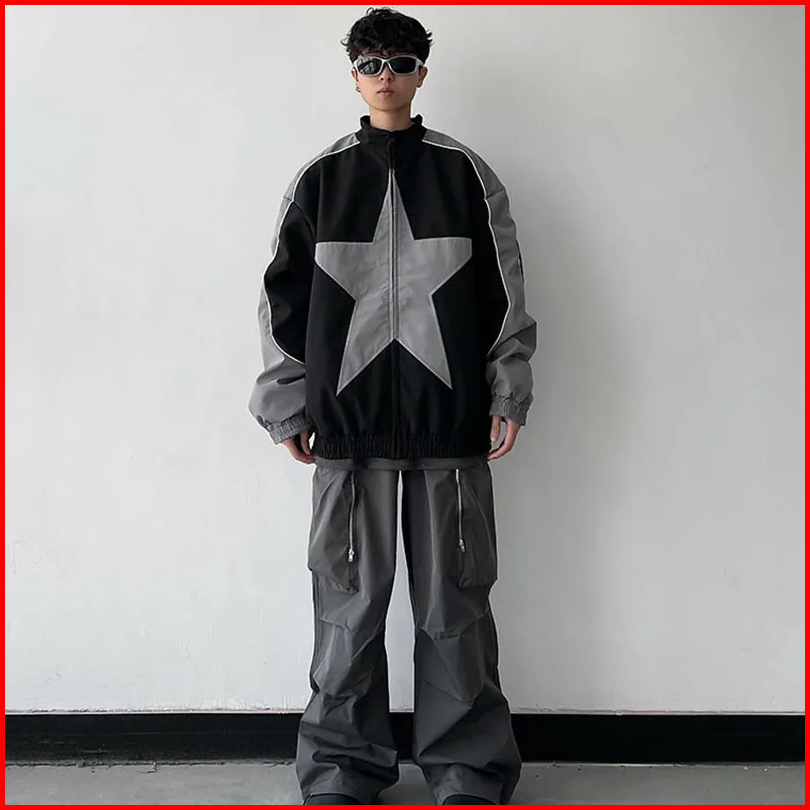 Overflowstuff Y2k Windbreaker Star Pettern Vintage