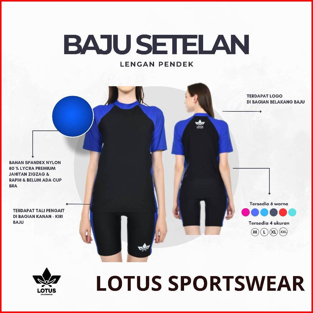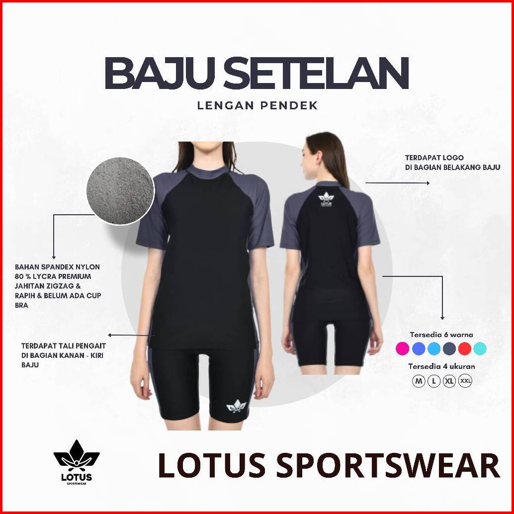 Baju Renang Wanita Dewasa Setelan Tangan Pendek Dan Celana Pendek
