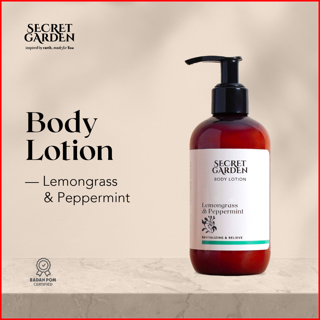 Secret Garden - Body Lotion Lemongrass Peppermint 250ml Tekstur Ringan With Vitamin E Uv Filter Melembapkan Mencerahkan