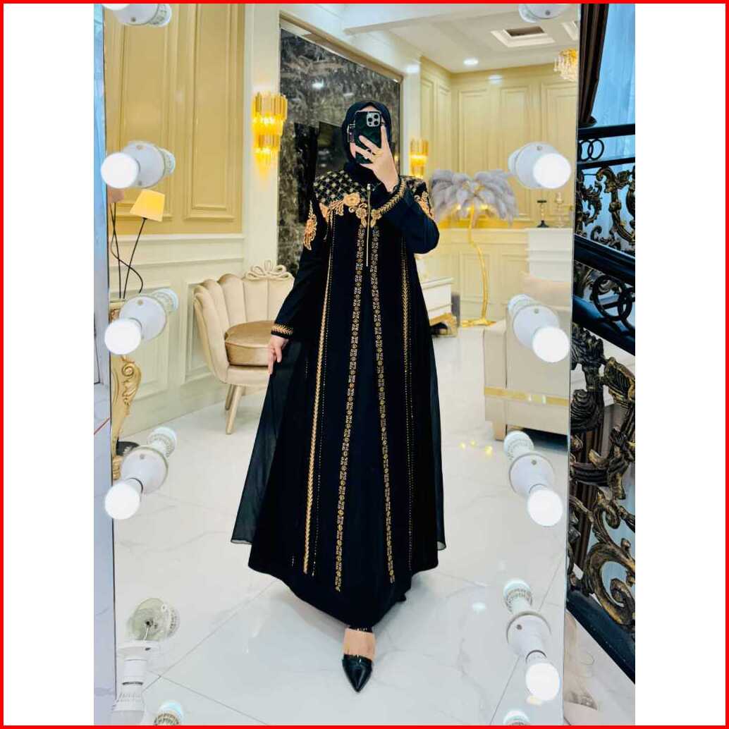 Gamis Abaya Hitam Turkey Bahan Jersey Mix Ceruty Bordir Baju Busana Maxi Dress Muslim Wanita - Mayra