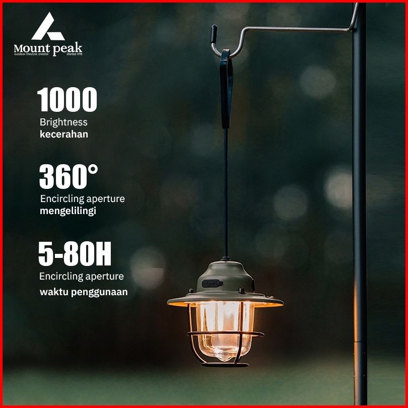 Mount Peak Lampu Lentera Led Hanging Lamp Vintage Lampu Gantung Led Rechargeable Lampu Kemah Camping Lamp Retro Tahan Ai