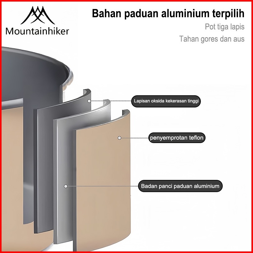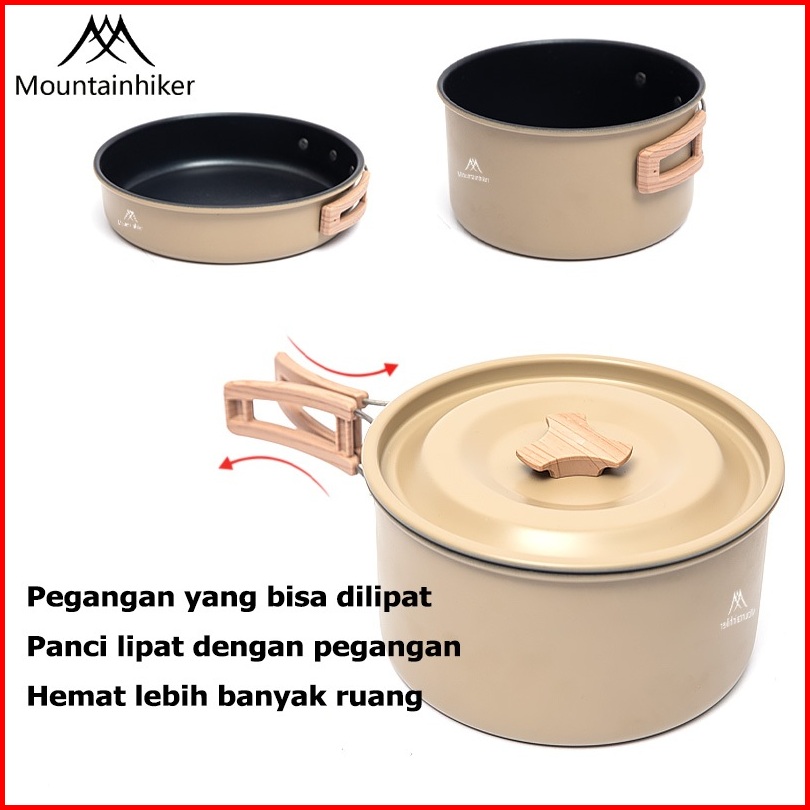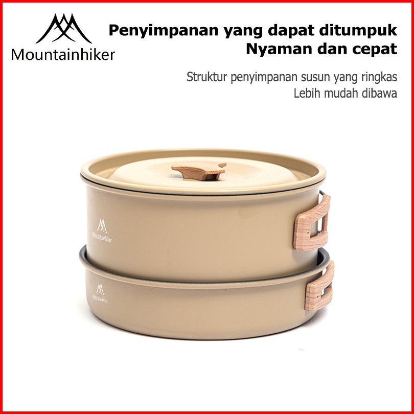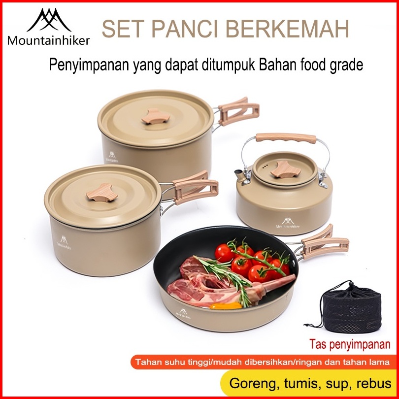 Mountainhiker 3pcs 4pcs Set Khaki Paduan Aluminium Kelas Makanan Alat Masak Set Camping Mini Kemah Rekreasi Paket Cookin