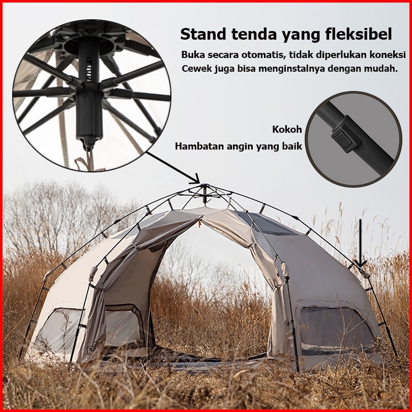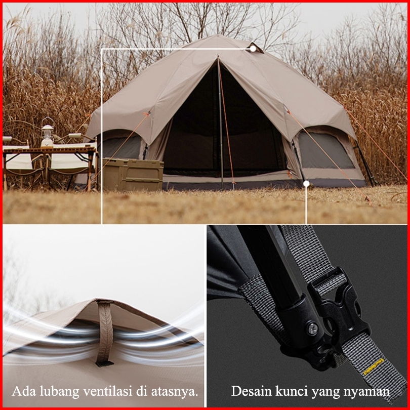 Tenda Otomatis Heksagonal Tenda Jamur Cocok Untuk Keluarga 6-8 Orang Camping Outdoor
