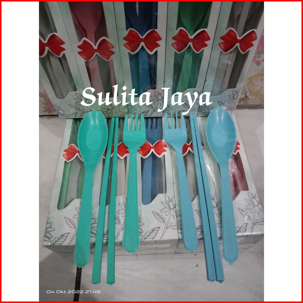 Souvenir Sendok - Isi 25 Pcssouvenir Pernikahan Sendok Set 3in1 Sendok Garpu Sumpit Kemas Box Motif Csntik Isi 25pcs