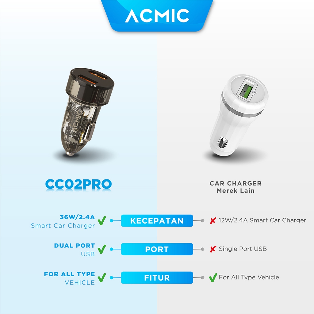 Car Charger ACMIC CC02PRO Mobil Dual USB 36W Fast Charging
