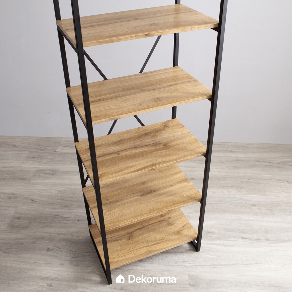 Rak Buku Dekoruma Kozu 5 Susun Kayu Olahan Besi Lemari Pajangan Display Minimalis