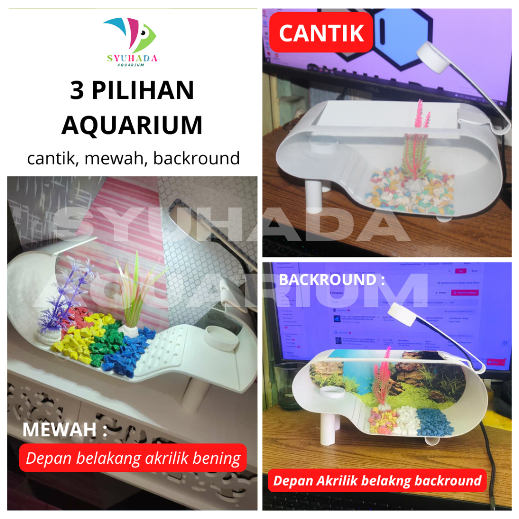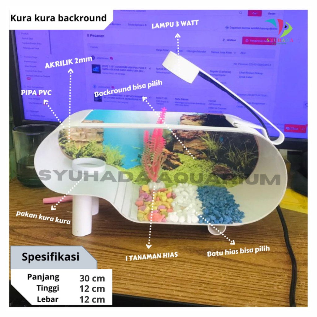 Aquarium Kura-Kura Pvc Lengkap Lampu Led 3 Watt Hiasan Rumah Hewan Peliharaan