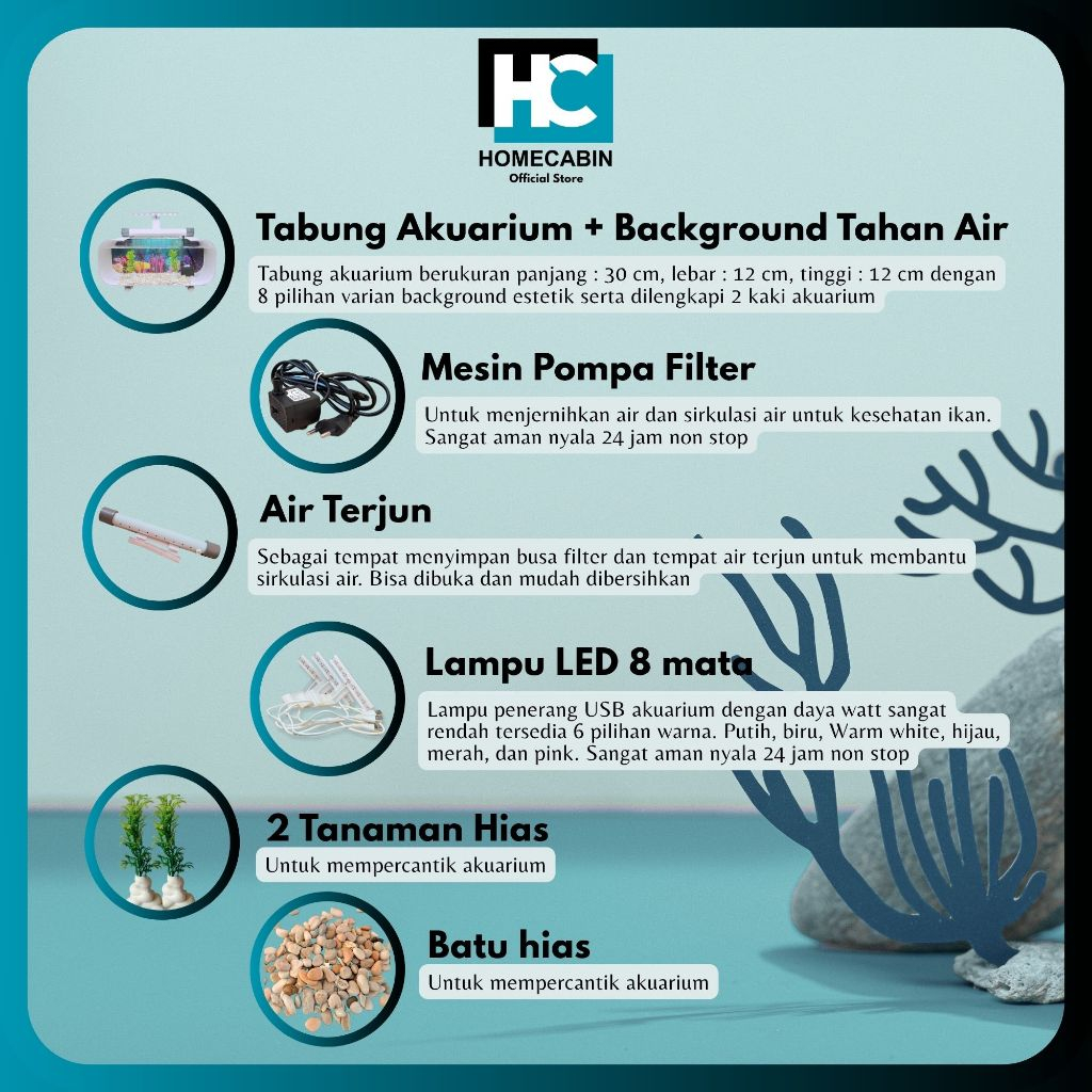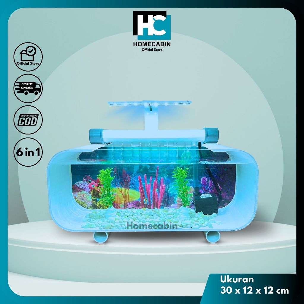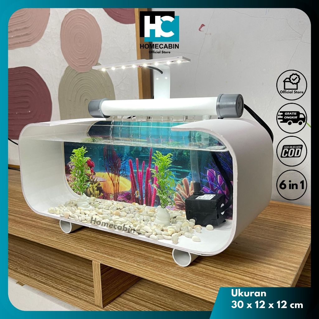 Aquarium Mini Akrilik Fullset Pompa Filter Fk Ikan Hias Dekorasi Rumah Siap Pakai