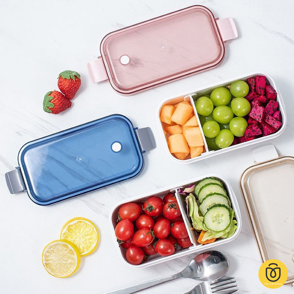 Kotak Makan 600Ml 1 Pcs 2 Grid Single Layer Anti Tumpah Bocor Hw151
