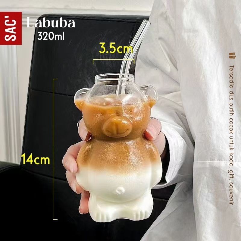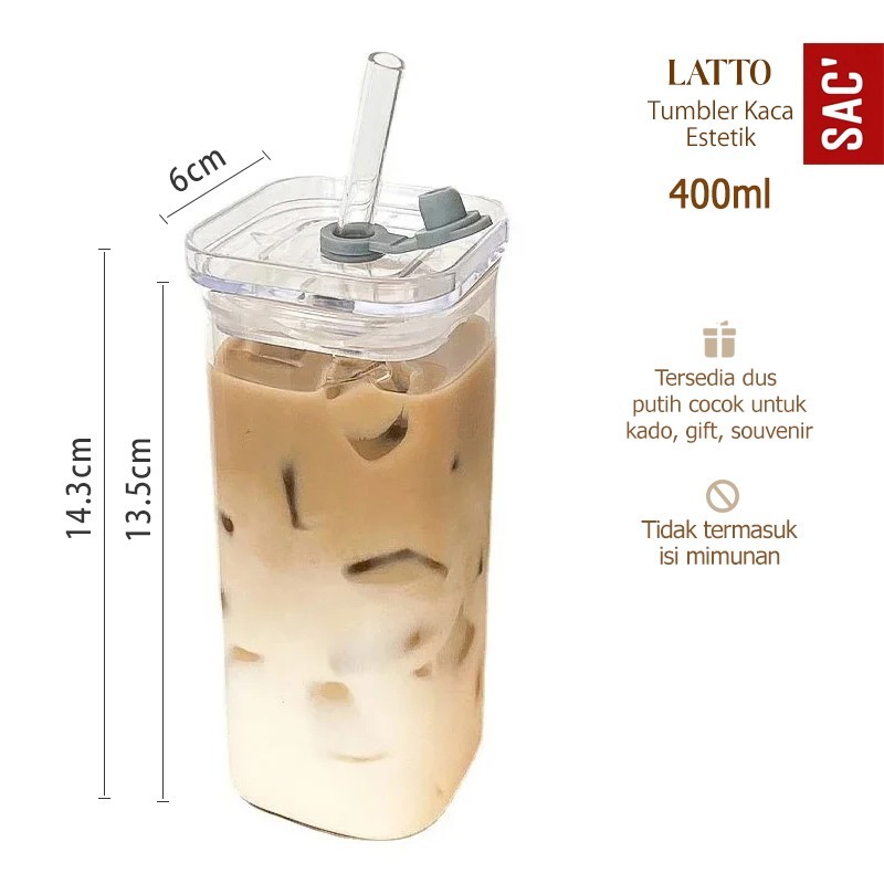 Gelas Kaca Latto Estetik Minum Kopi Susu Jus Tumbler Sedotan Matcha Coffee Milk