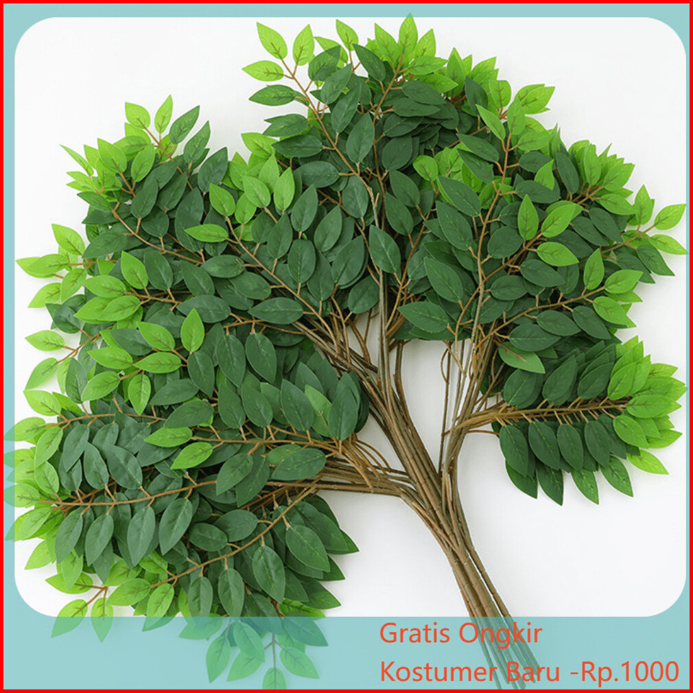 Daun Pohon Banyan Artificial Daun Pohon Beringin Hijau Tanaman Hijau Buatan Batang Daun Dekorasi Lanskap