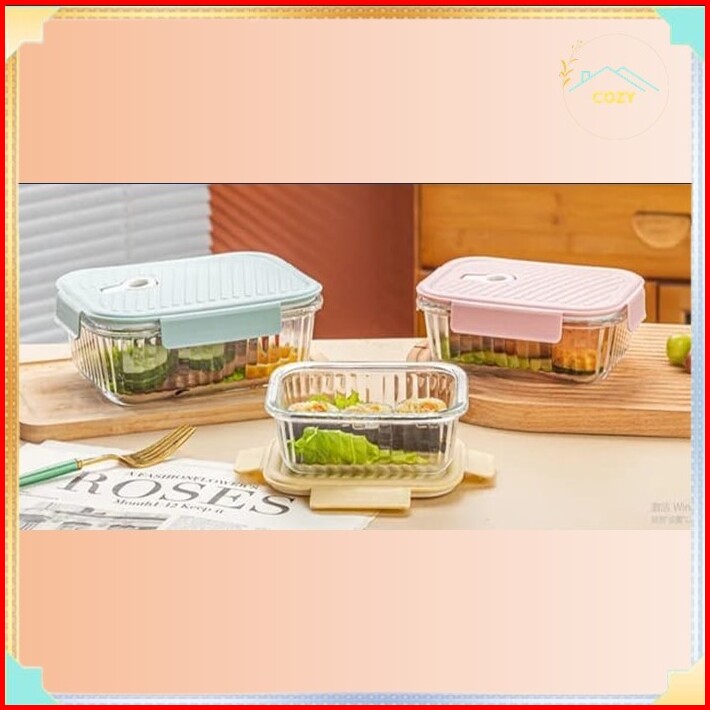 Lunch Box Kotak Makan Kaca Glass Clear Warna Warni Microwave Kaca Bento Box Bekal Penyimpanan Makan Tahan Panas Dan Ding