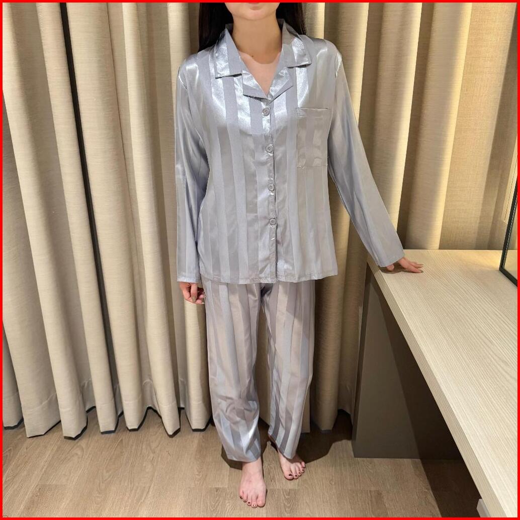 Pickme A14 Baju Tidur Lengan Panjang Pendek Stelan Oneset Wanita Baju Tidur Satin Lengan Panjang Pendek