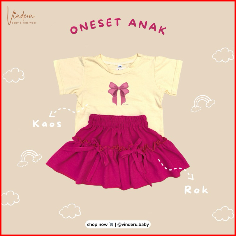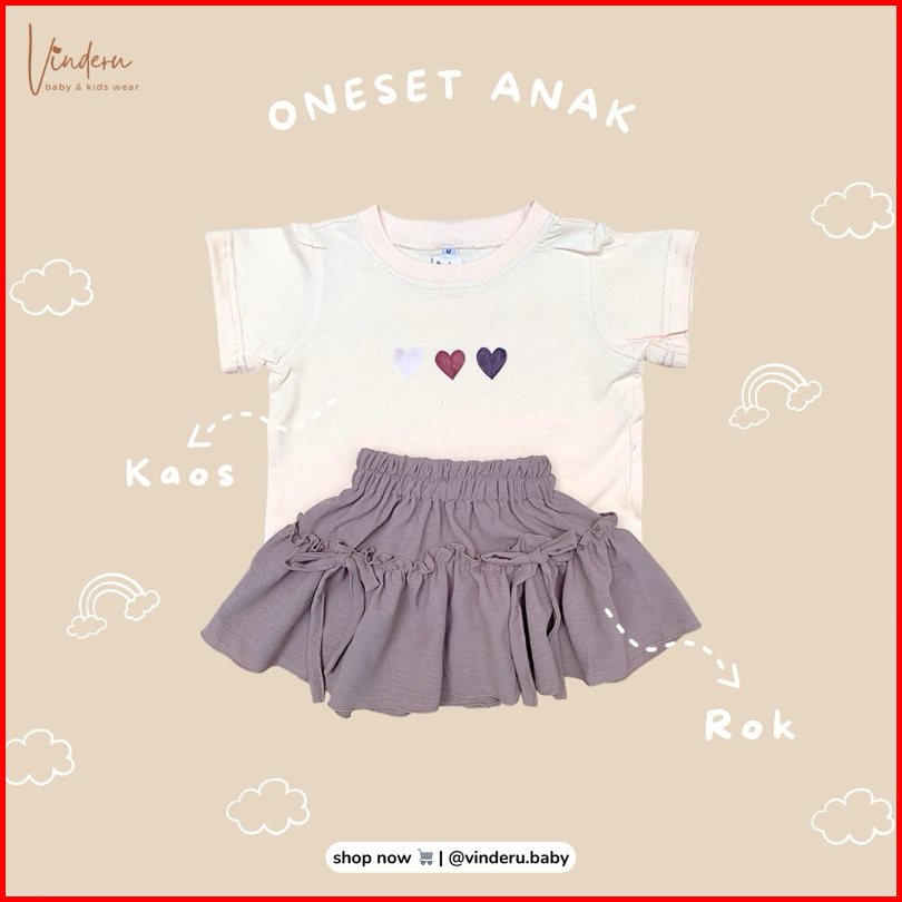 Vinderu Oneset Labubu Kaos Anak Setelan Anak Cotton Combed 30s