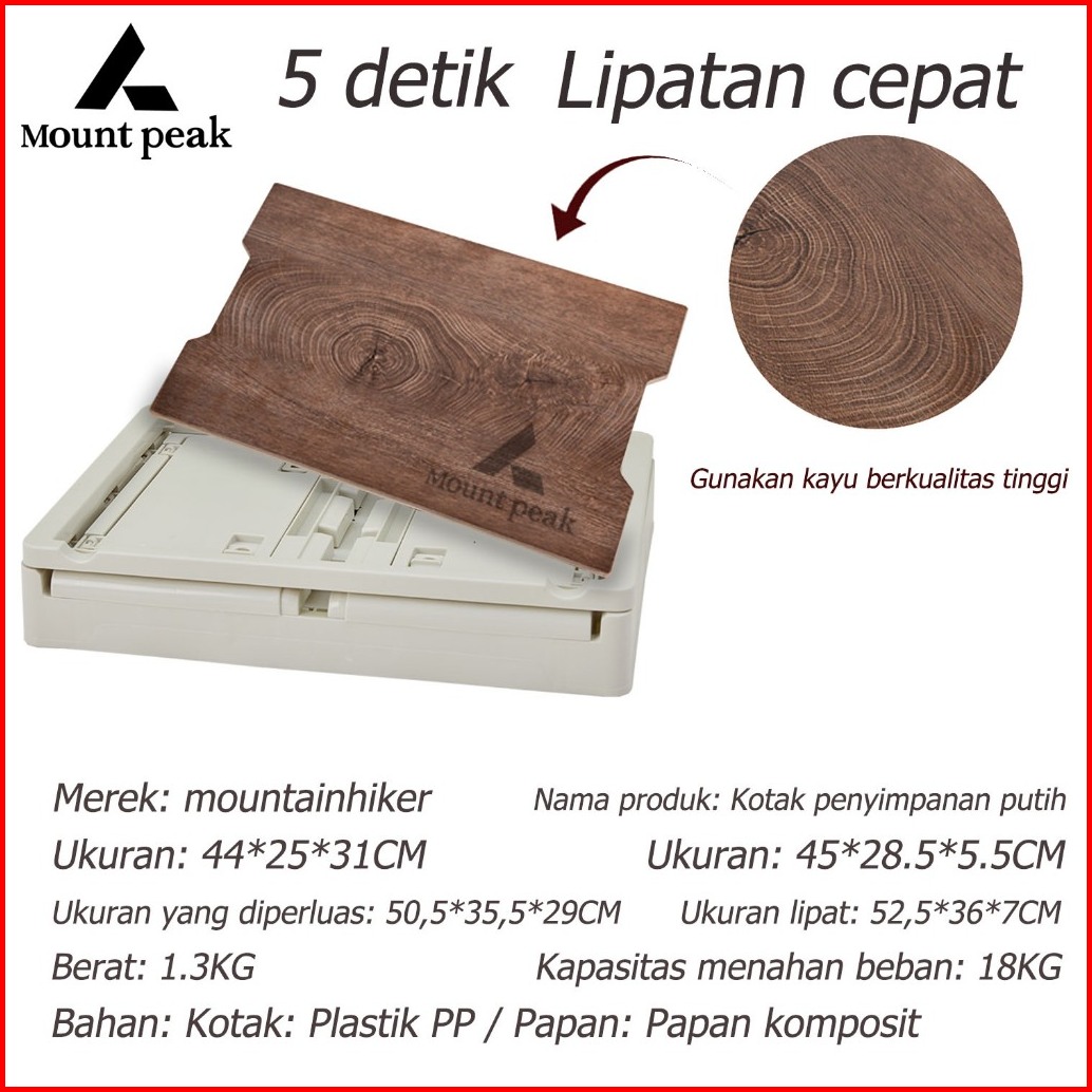 Mountpeak Kotak Penyimpanan Penutup Kayu Multi Fungsi Box Organizer Lipat Outdoor Piknik