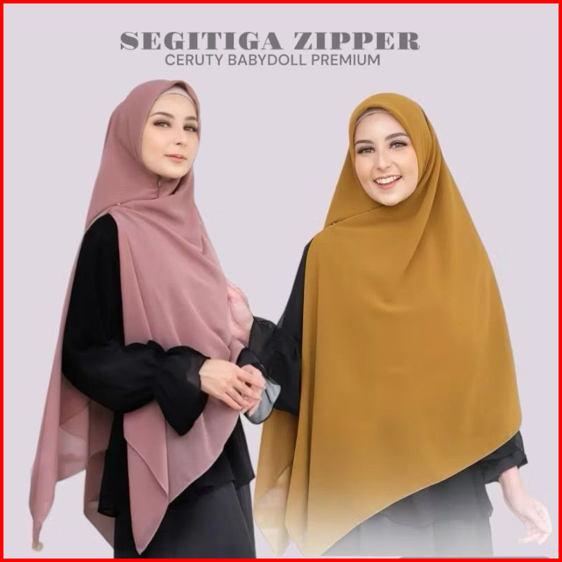 Hijab Syari Fatimah Khimar 2 Layer Kerudung Jilbab Hijab Zipper Jumbo Syari Resleting Segi Empat Jilbab Ziper Ceruty Cer