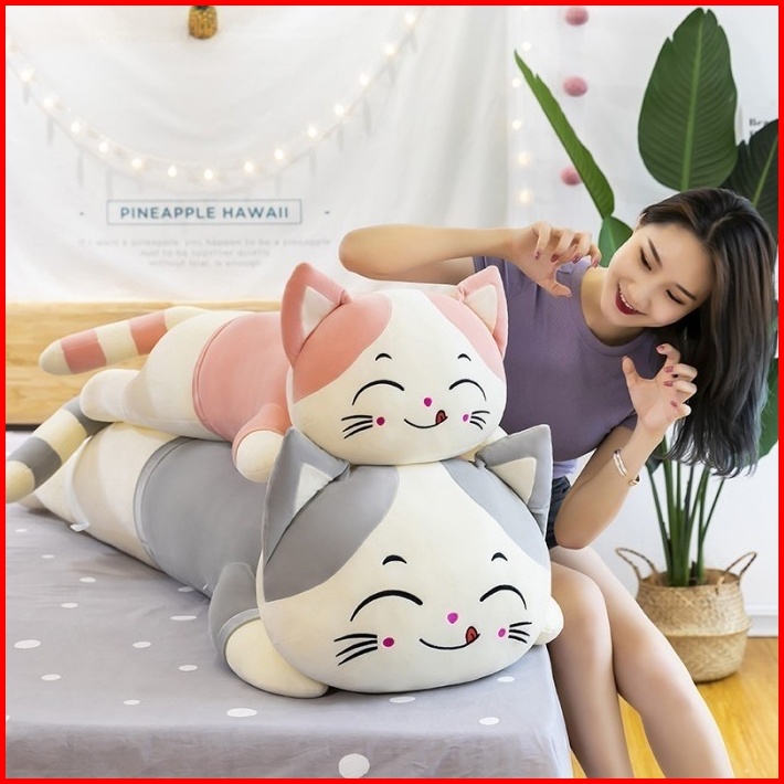 Boneka Guling Kucing Cat Lying Cute Ukuran 50 Cm Plush Premium