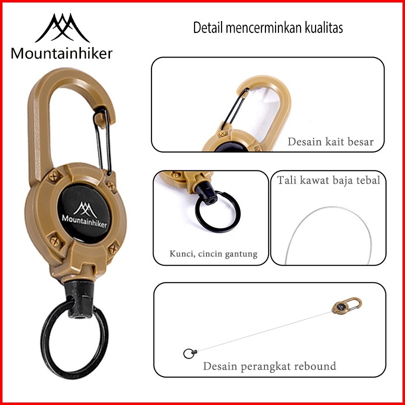 Mountainhiker Gantungan Kunci Tarik Tali Baja Roll Keychain Id Card Hook Carabinner