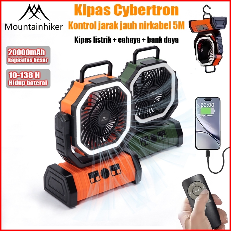 Mountainhiker Kipas Angin Portabel 20000mah Pengaturan Angin 3 Tingkat Layar Led Portabel Dapat Dilipat Luar Ruangan