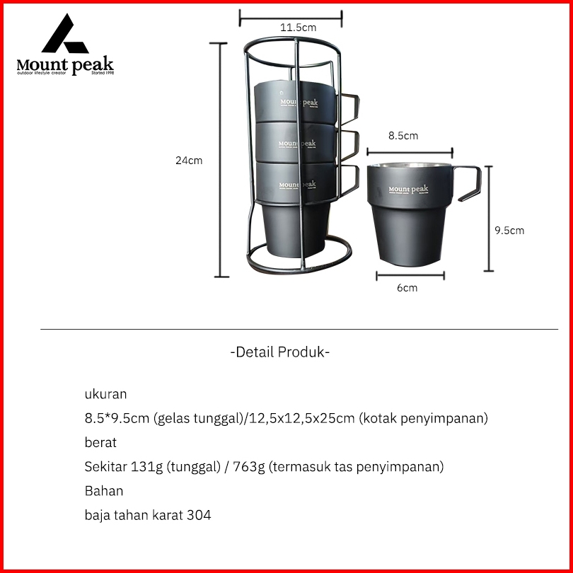 Mountpeak Toko Sarina Stainless Cup Camping Mug 300ml 4pcs Black Series