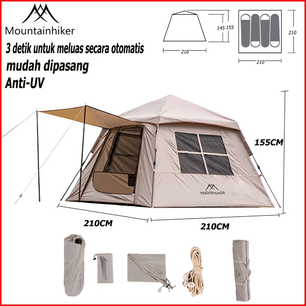 Mountainhiker Tenda Camping Otomatis 3-4 Orang Tenda Kanopi Kemah Tent Camping Outdoor Szk385