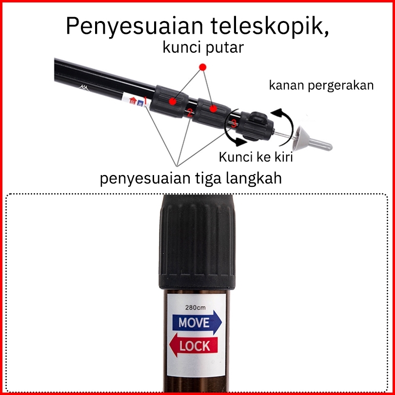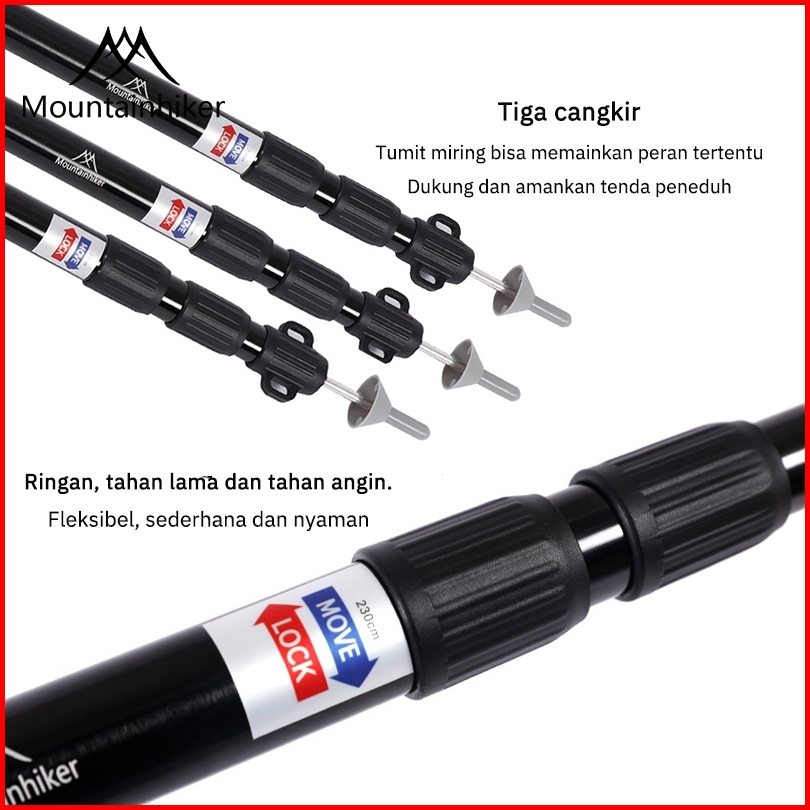 Mountainhiker Tiang Tenda Aluminium Flysheet 2 8m Penyesuaian Teleskopik Empat Bagian