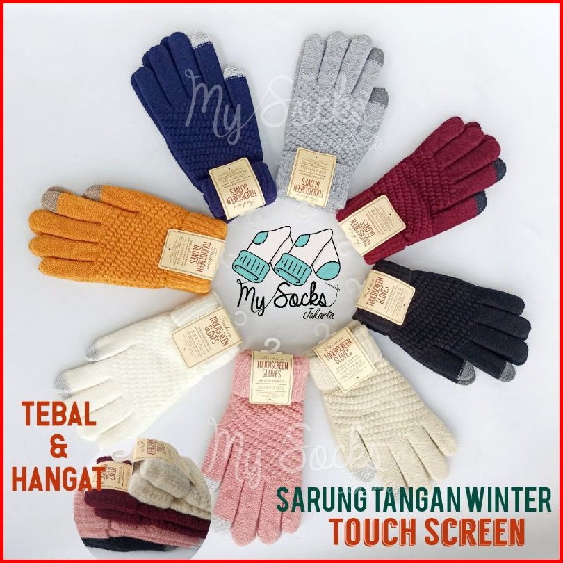 Sarung Tangan Wanita Pria Wool Touch Screen