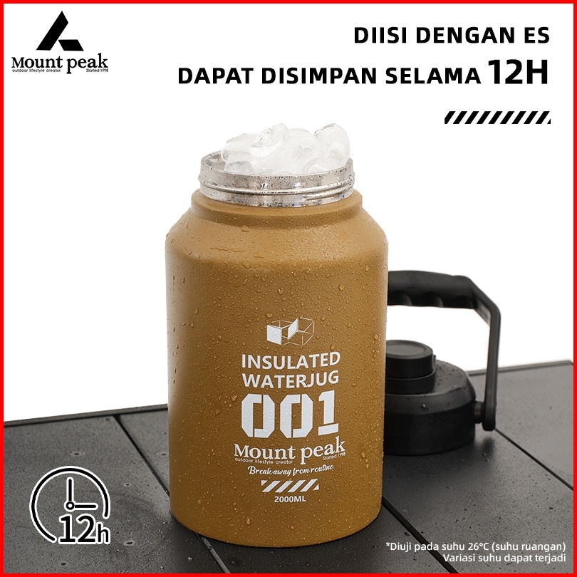 Mountpeak Water Jug 2l Ice Bucket Botol Stainless Steel Tahan Suhu 24 Jam Outdoor Camping Picnic Travel Kantor Rumah