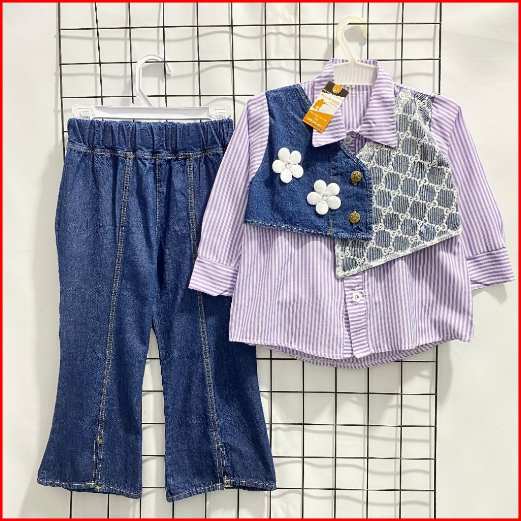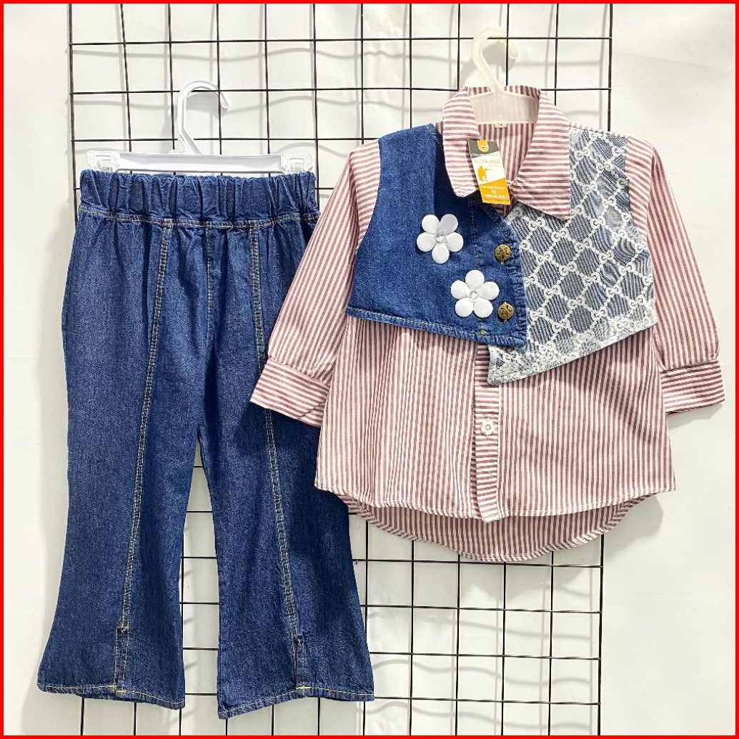 One Set Cut Bray 2-12 Tahun Bahan Katun Salur Fashion Anak Kekinian