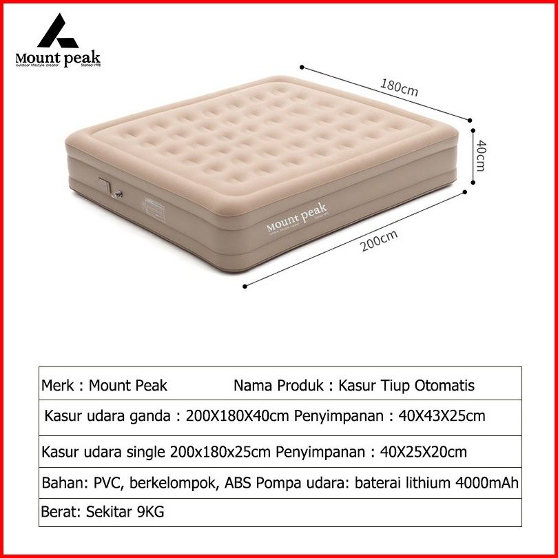 Mountpeak Tiga Orang Kasur Angin Tempat Tidur Tiup Kasur Udara Otomatis Portabel Outdoor Rumah Camping Tamu Darurat Nti