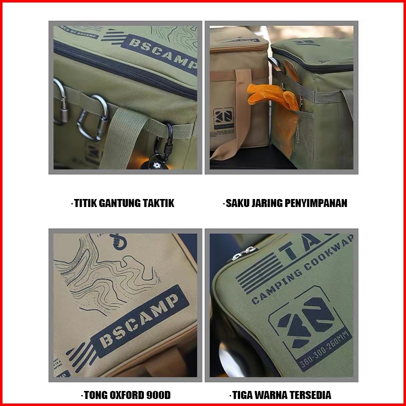 Tas Penyimpanan Taktis Berkapasitas Besar Untuk Luar Ruangan Set Panci Dan Kompor Tas Penyimpanan Tangki Bensin Anti-tab