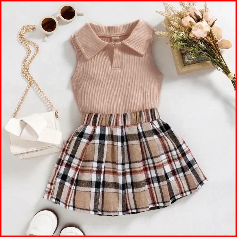 Setelan Baju Lekbong Dan Rok Anak Perempuan Terbaru Usia 1-5 Tahun Bahan Knit Strip Bagus Halus Nyaman Dipakai Anak.