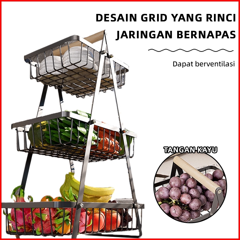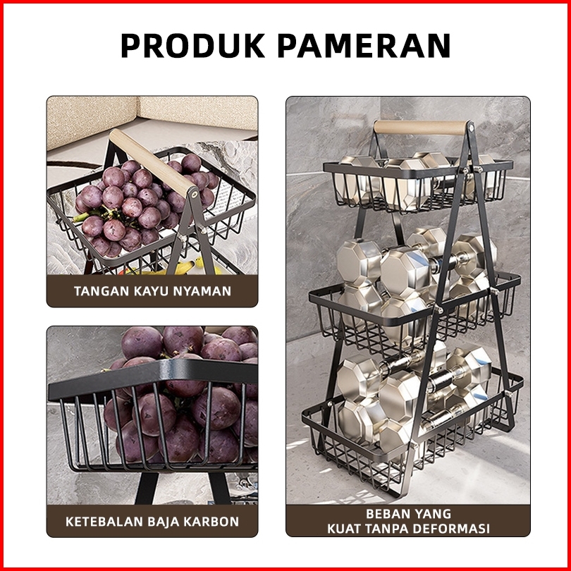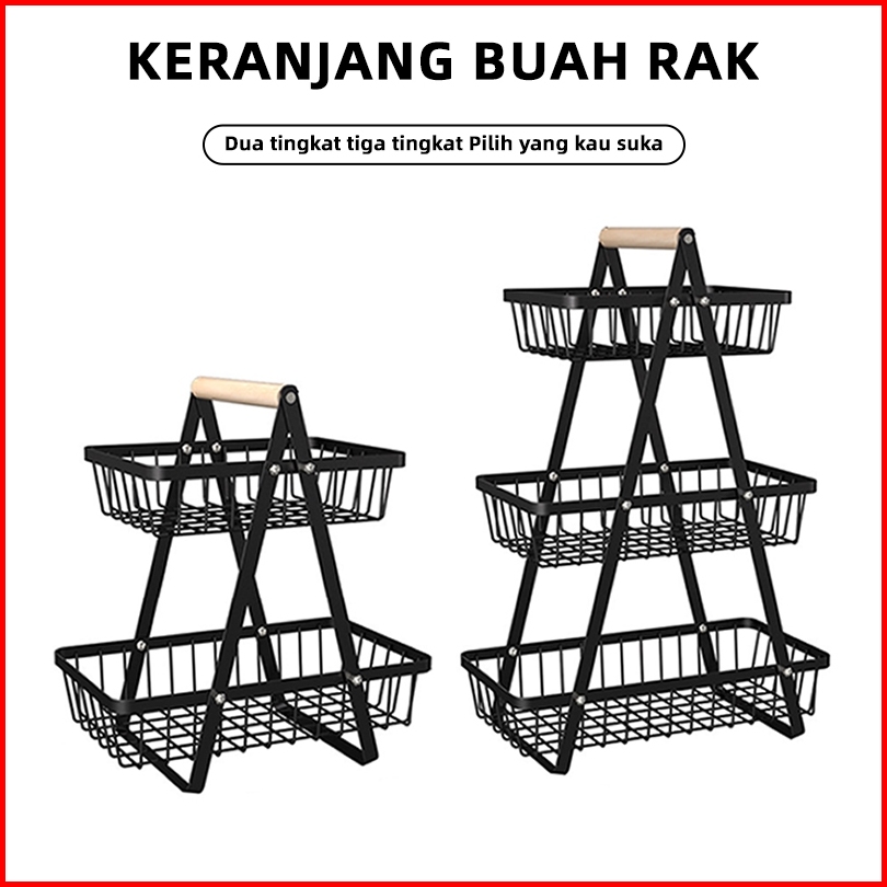 Rak Penyimpanan Luar Ruangan Keranjang Buah Keranjang Penyimpanan Multifungsi Dua Lapis Penyimpanan Camilan Buah Keranja
