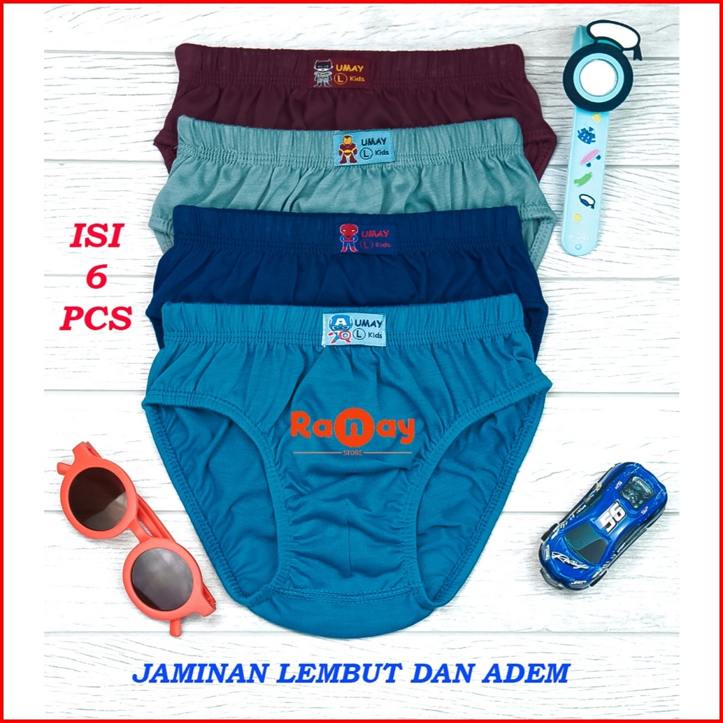6 Pcs Celana Dalam Anak Laki-laki Umay Kids Boys Briefs Cotton Blend Motif Dan Polos Kids Boy