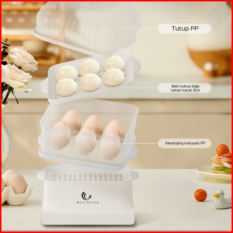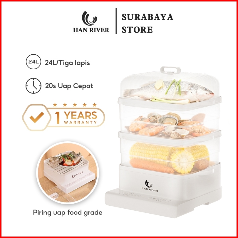 Han River Electric Steamer 24l Kukusan Listrik 3 Lapis Kapasitas Besar Multifungsi Hotpot Steamer