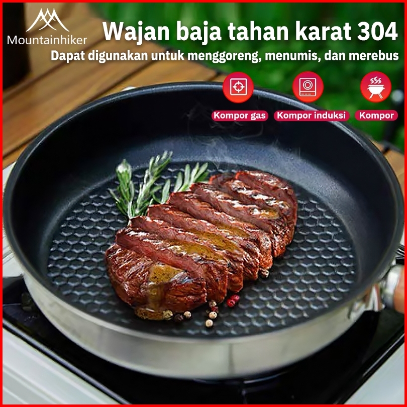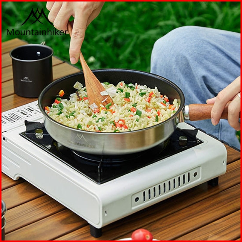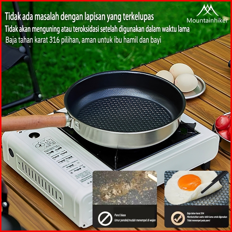 Mountainhiker Wajan Penggorengan Baja Tahan Karat Rumah Tangga Berkemah Luar Ruangan Wajan Anti Lengket