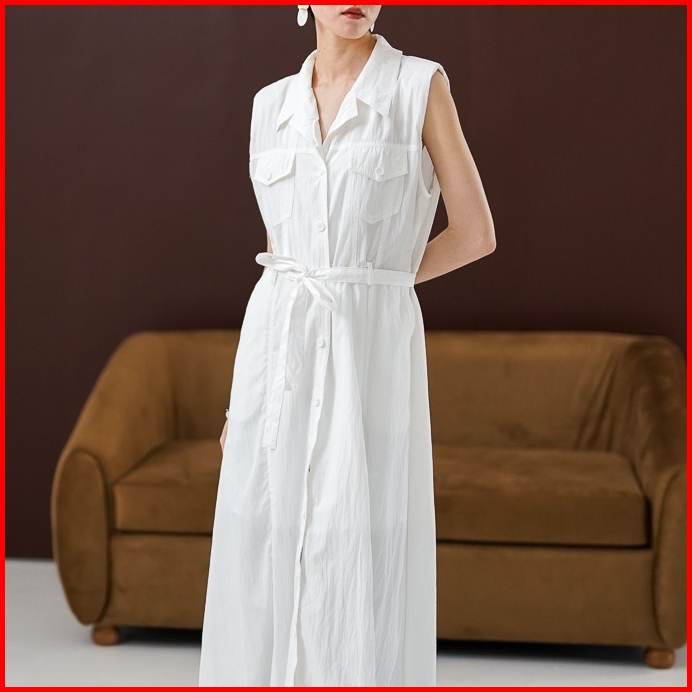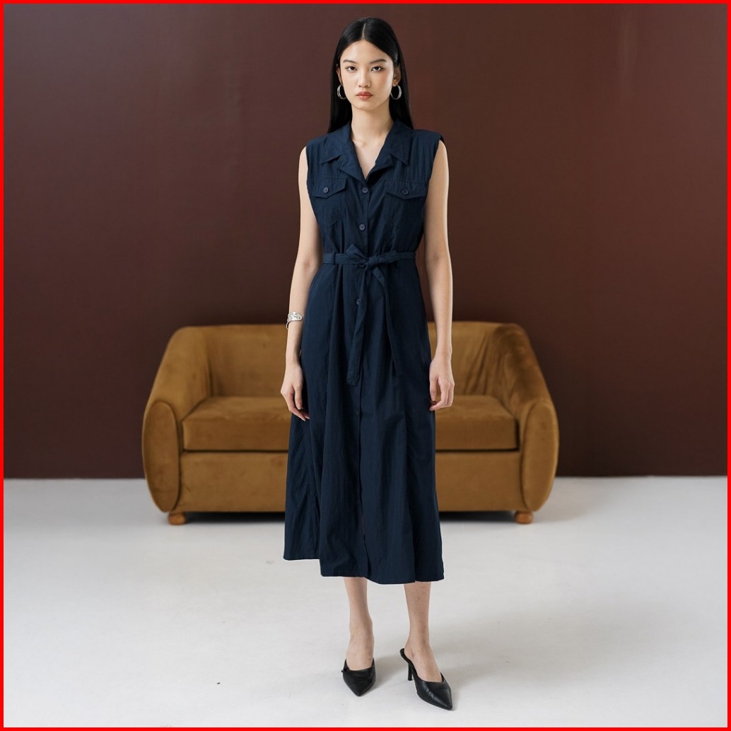 This Is April Gaun Midi Wanita Kekinian Tanpa Lengan Casual Look Orielle Dress Navy Dan White