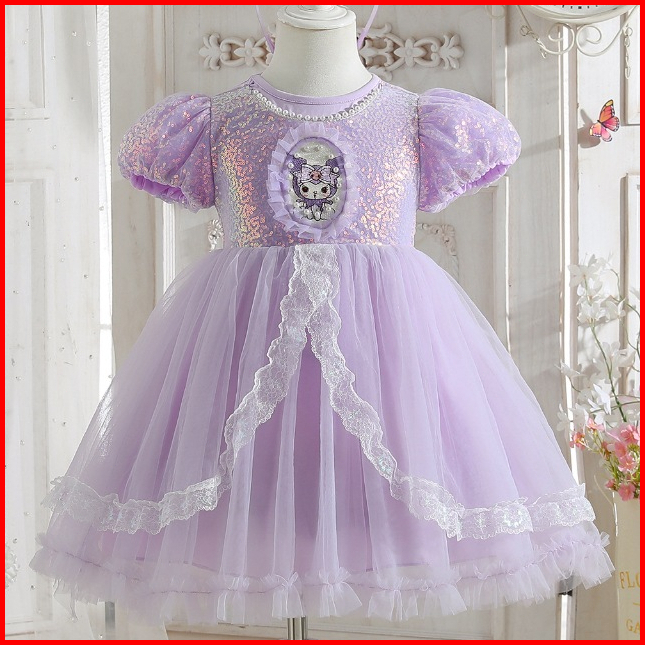 Yomika 2-8yrs Kuromi Sequins Lilac Pink Dress Dress Anak Ulang Tahun Anak Perempuan