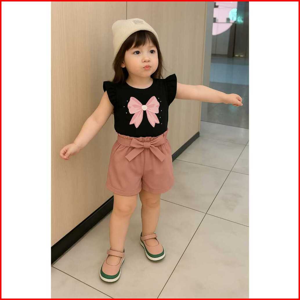 Setelan Pita Anak Perempuan Umur 1-5 Tahun Baju Anak Perempuan Trendy Kekinian Viral