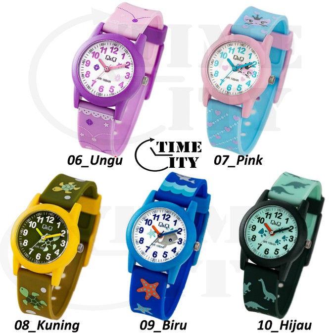 Jam Tangan Anak Q&Q Vr99J006-010Y Original Rubber Band Anti Air Cheerfull Style