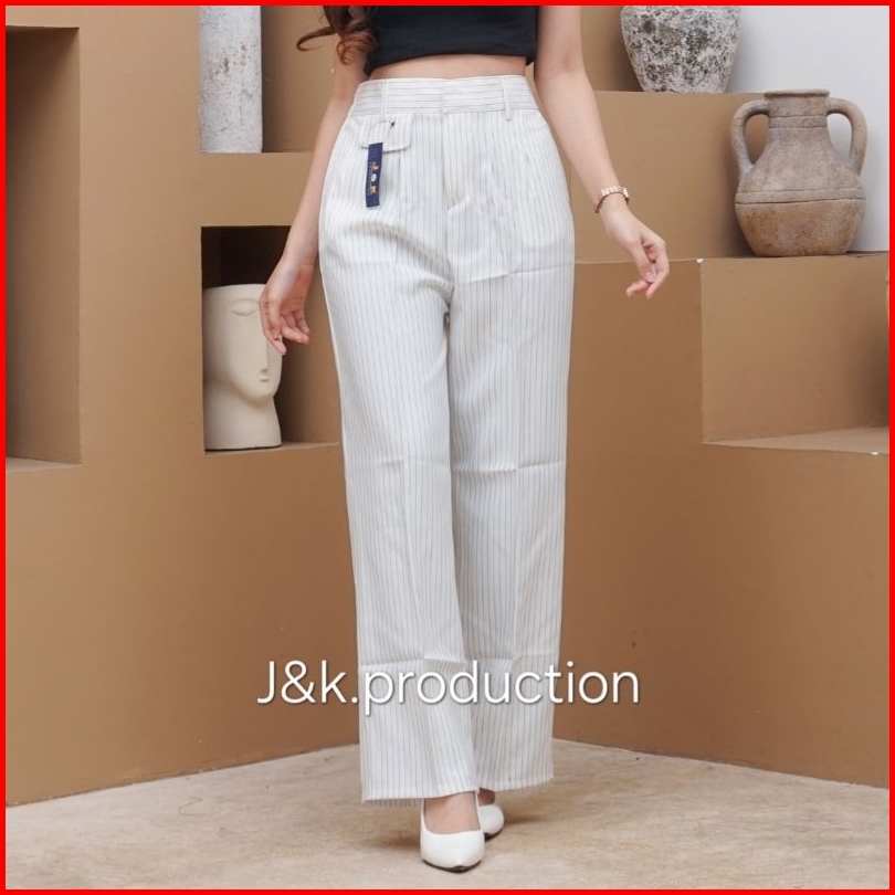 Oro Pants Stripe - Celana Kulot Garis Garis - Celana Highwaist Wanita - Loose Pants Salur