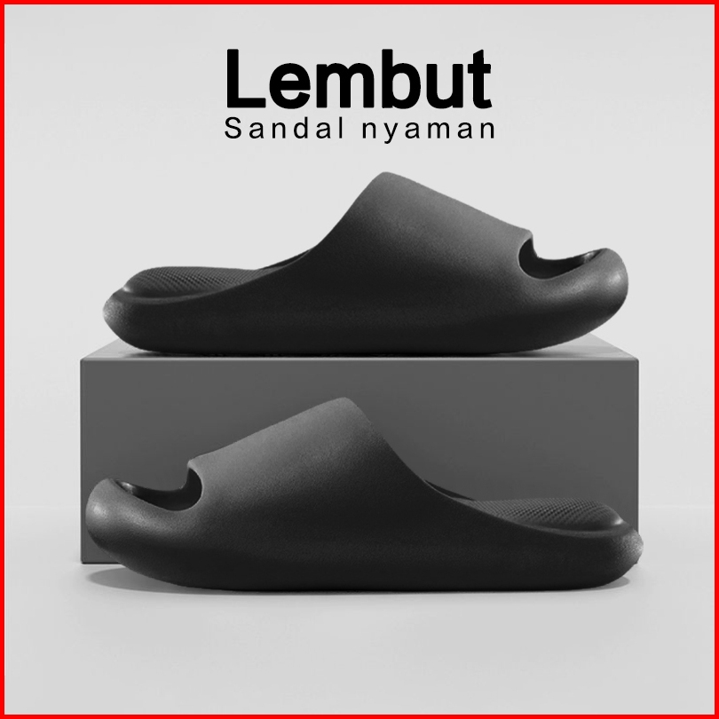 Sendal Slop Cowo Sandal Pria Wanita Kekinian Empuk Sendal Laki Jelly Rumah Sepatu Sandal Wanita