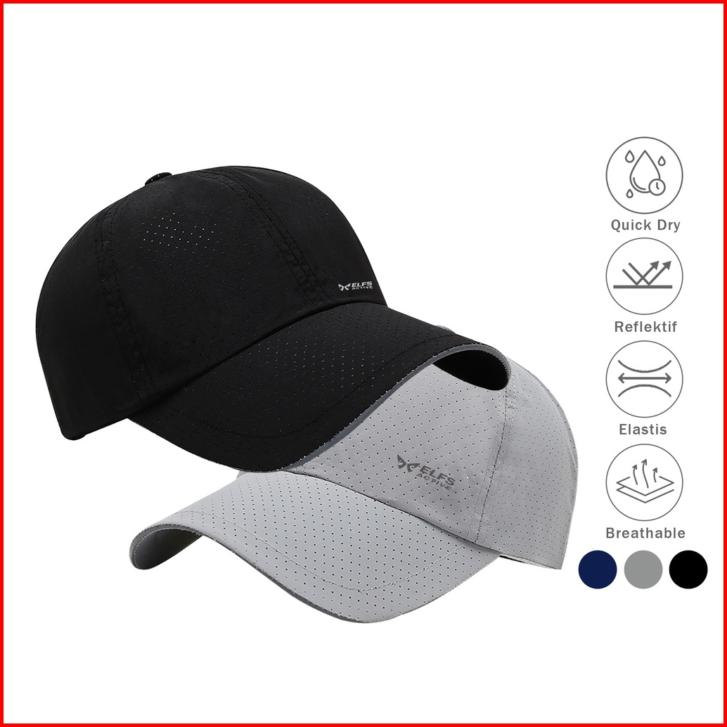 Topi Running Hiking Hat Quick Dry Reflective Mesh Sports Baseball Cap