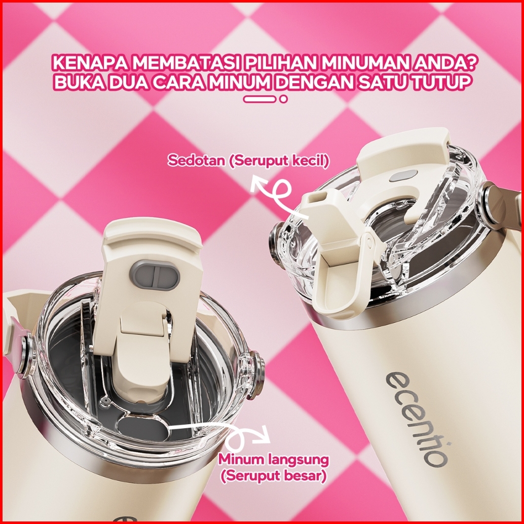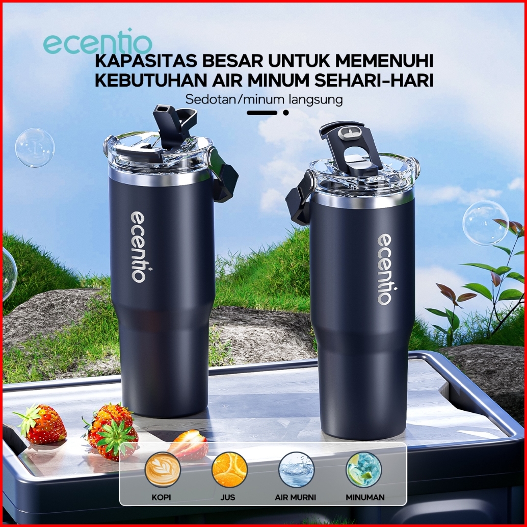 Premium Ecentio Tumbler 900ml Tumbler Tahan Dingin 24 Jam Mug Kopi Tahan Panas Dengan Sedotan Stainless Steel 304 Vacuum