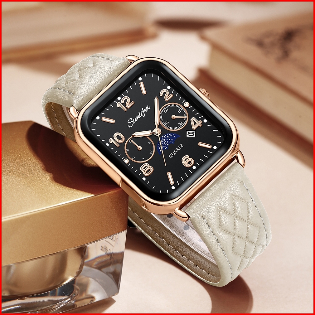 Sunlifex Jam Tangan Wanita Anti Air Klasik Original Square Dial Leather Strap 5009 Free Box